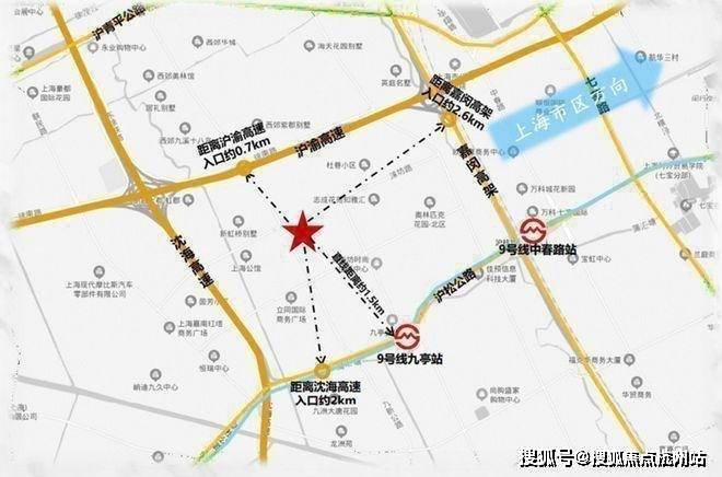 地铁:本案直线距离9号线九亭站1.5km,8站直达徐家汇(约30分钟);