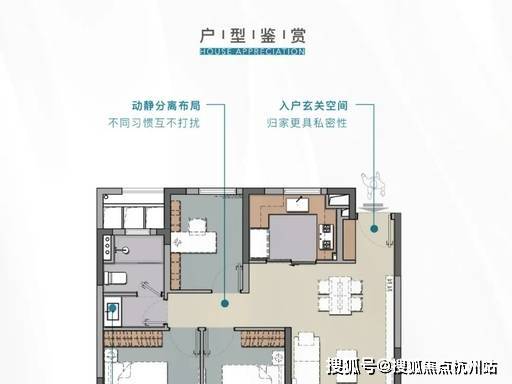 亮点:全明设计,双卫配置;主卧套房带独立卫浴与飘窗,客餐厅连通南向阳台,得房率约 79%,同面积段空间感与实用性拉满。