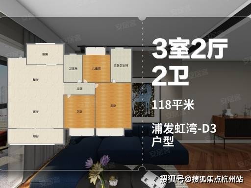 3. 建面约 118㎡高层三房两厅两卫(刚改优选,宽境横厅)