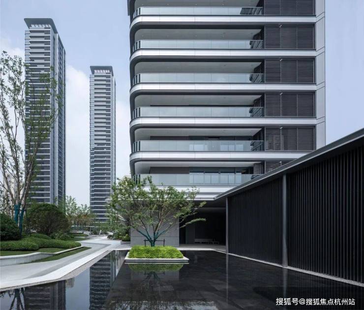 杭州壹号院以反重力立面美学,框下了城市江岸盛景,也成为杭州城市封面的独特一隅。宽域玻璃面、高品质铝板与精致的石材、金属线条、玻璃栏板型材线脚相融,以弧线、充满科技、未来都市感的建筑语言,诉说奥体中心时代之“潮”。