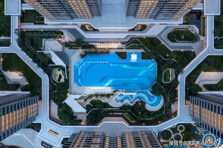 一座梦幻感的度假风特色泳池,如一颗不规则的宝石掩映在信达中心|杭州壹号院的中心园林之间,远远望去,高差与叠水的巧妙让泳池仿佛漂浮于空中,这一方承载着欢笑与成长的空间,增添了生活的无限乐趣。夏天,这抹都市生活里的蔚蓝,打开一种既可观赏又可畅游的生活方式。