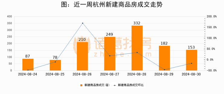【杭州成交日报】08月30日新房成交153套、二手房161套;涨价房源32套