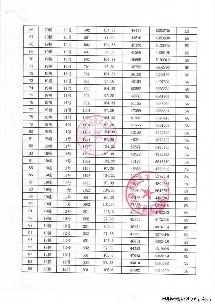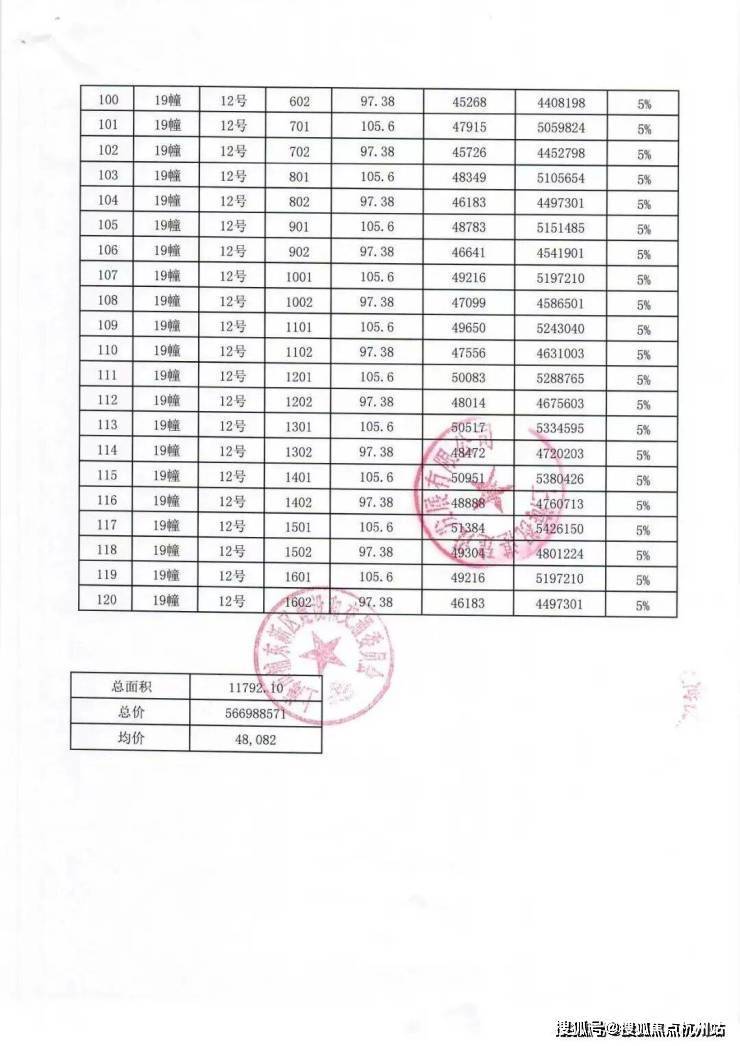 一房一价表: