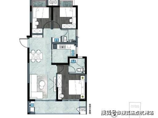 3. 建面约 102㎡三房两厅两卫(性价比爆款,三口之家首选)