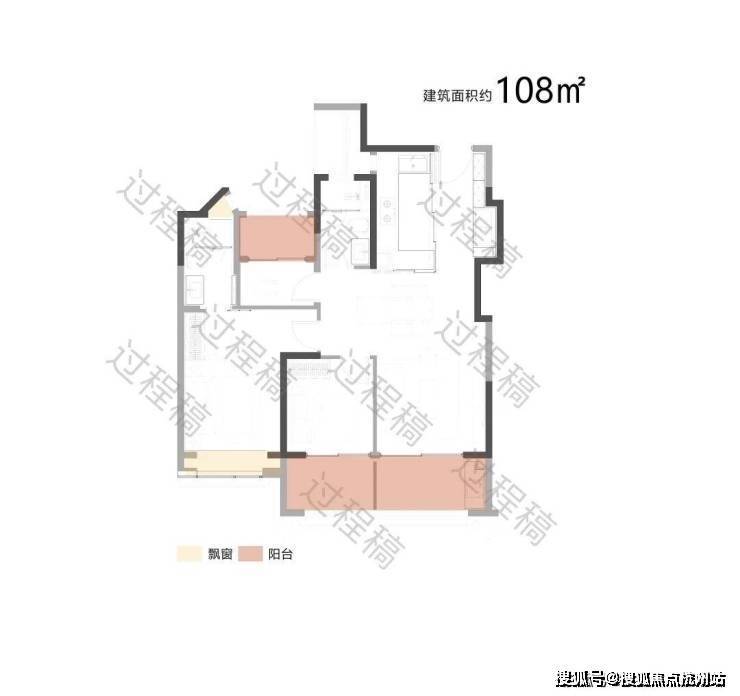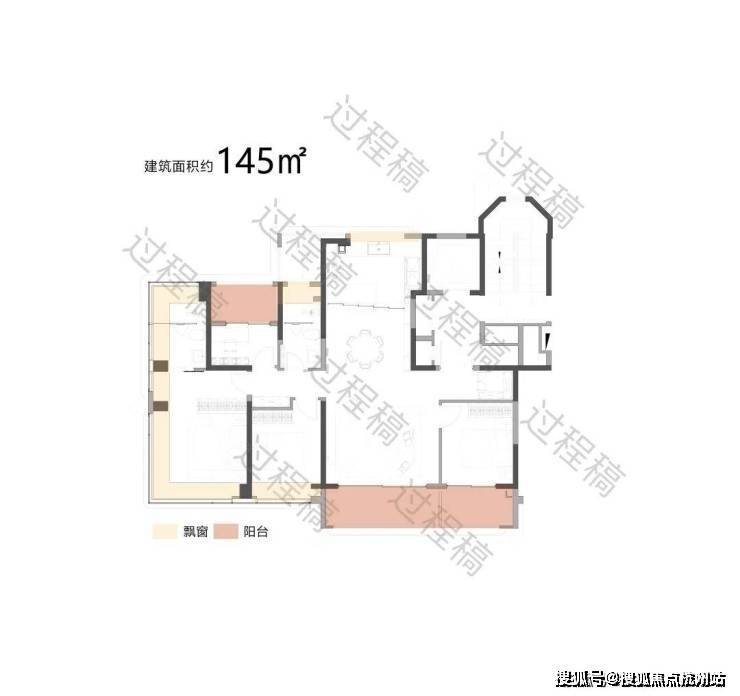 户型配备大面积飘窗(浅米色区域)和阳台(浅粉色区域),飘窗可引入柔和的自然光线,提升卧室等空间的明亮度;阳台则进一步拓展了采光面,同时有利于空气流通,保障室内通风效果,让空间更显通透舒适。