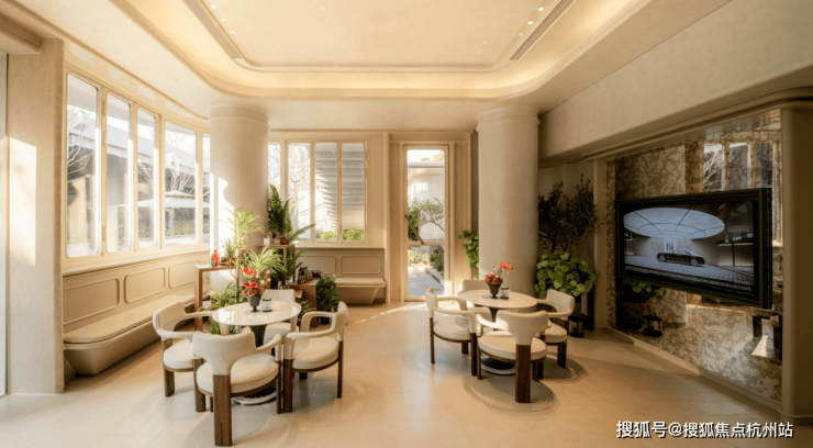 从苏河源头的潺潺水流,到社区门前四季常青的口袋公园,再到约 3900㎡的立体景观规划,和樾长宁把城市 "绿肺" 从河岸延伸至空中,以几何级的绿植覆盖打造垂直绿化体系,让居者私享都市中的公园生活特权。