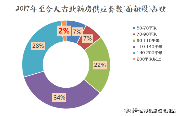 大古北近年来推出的新房产品,大多是刚需&改善,200平以上的一步到位奢侈住宅,占比不足 2% 。