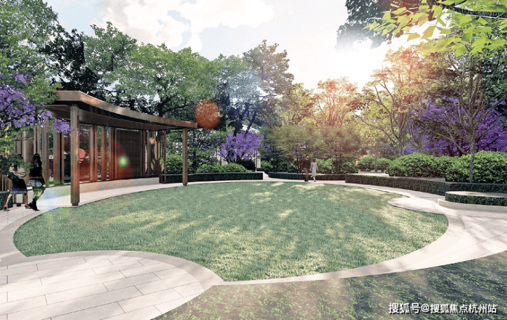中央水系的右侧是约200平方超大草坪,业主可在草坪上沐浴阳光、嬉笑玩耍,寻求生活中的宁谧。