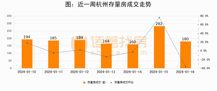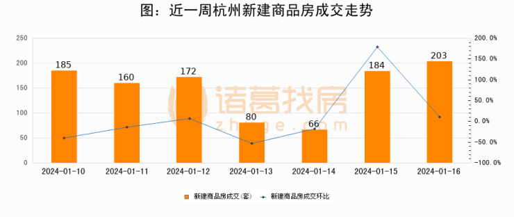 【杭州成交日报】01月16日新房成交203套、二手房180套;涨价房源74套