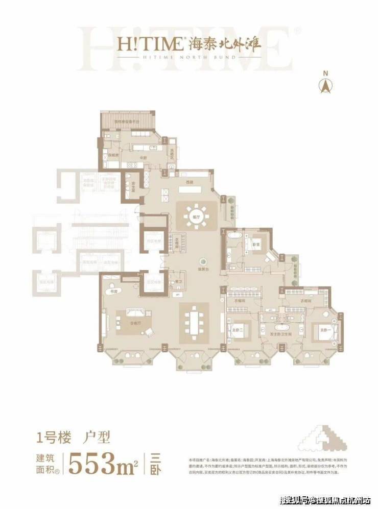 一号楼内的户型为建面约553-1222㎡