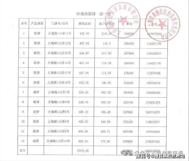【一房一价表】