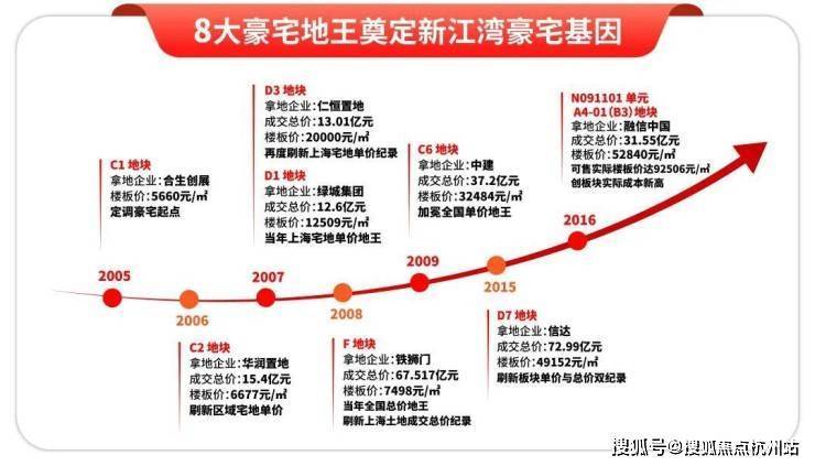 自2005年区域有土地成交伊始,新江湾城便开启了地王争霸的序幕,十年间8个地王项目,总价地王、单价地王纪录不断被刷新,镌刻着板块不可撼动的高端地位