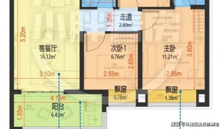 即使牺牲了部分次卧飘窗面积的阳台,也仅仅只有约4.15米的面宽。