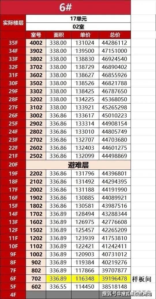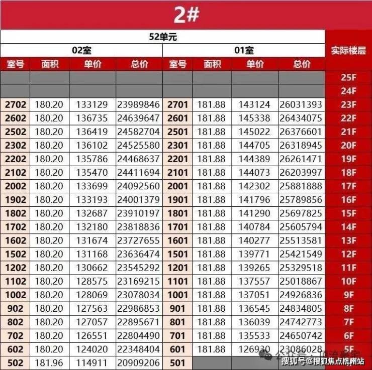 一房一价表: