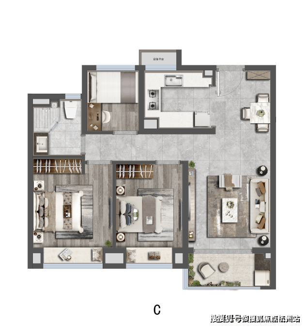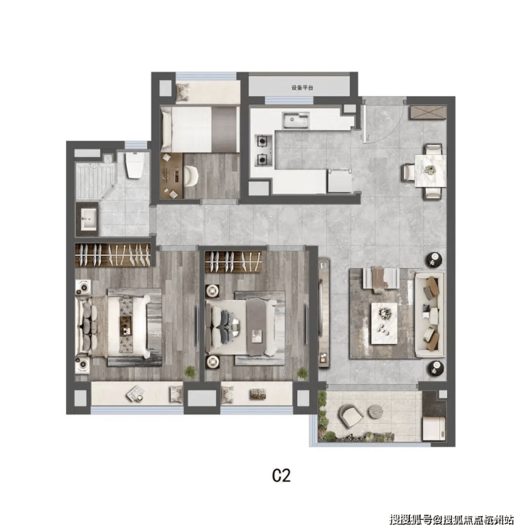 建面约88㎡三房