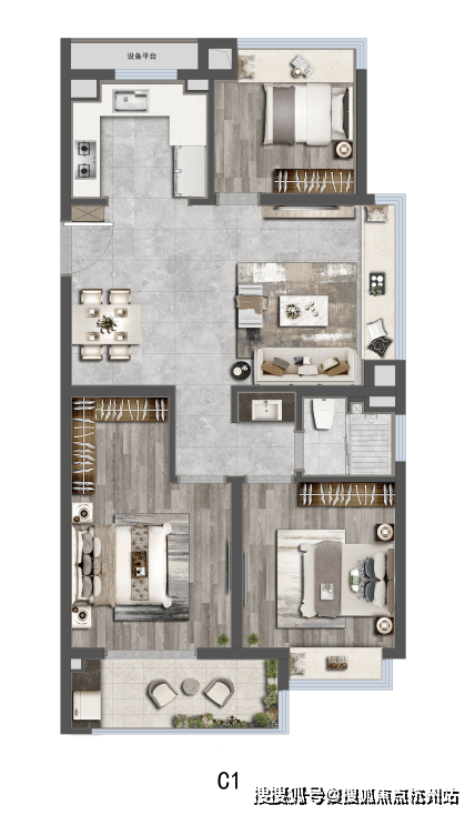 社区方面,项目打造全龄段,全维度活力健康住区,以“两轴一心、一环五区”园林景观规制约7500㎡中央景观,高配约600米环形健身步道。