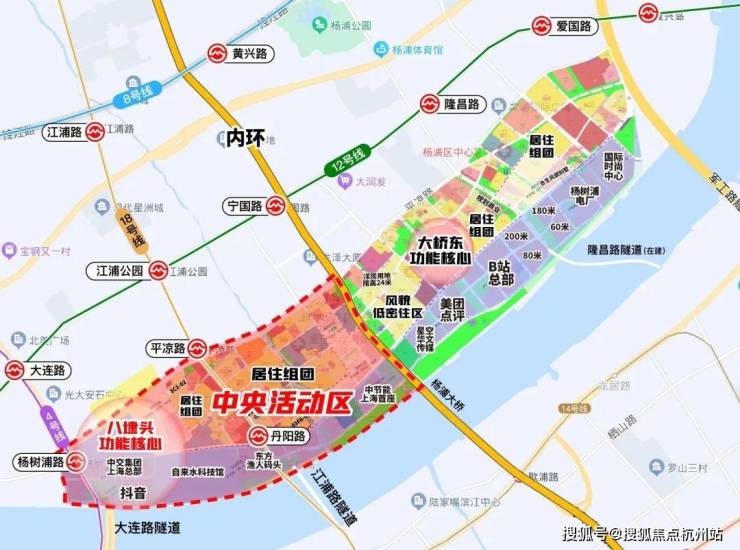 大桥东功能核心 汇聚了杨浦滨江更多的超高层建筑群,拥有 美团、哔哩哔哩、星空华文传媒总部、国际时尚中心、杨树浦电厂旧改项目 等地标产业&建筑。