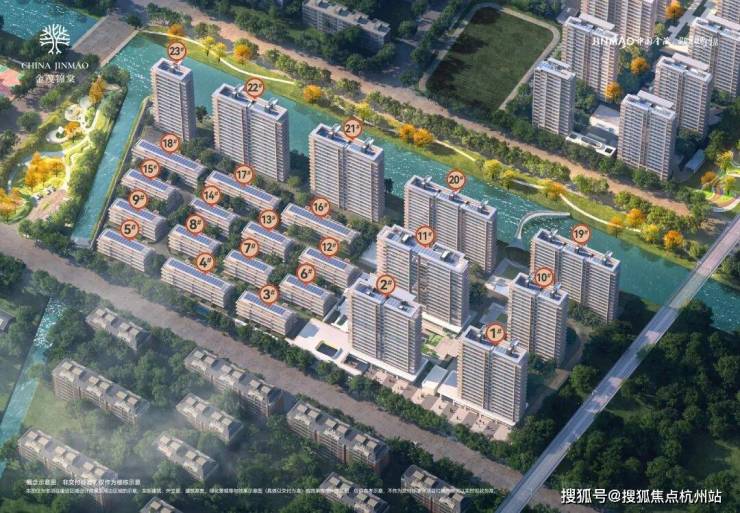 作为宝山站城融合项目的重要住宅拼图,金茂锦棠与金茂棠前仅相隔一条湄浦河。在这块总占地面积约42777.86㎡、容积率2.3的土地上,项目摒弃了常规的高密排布,而是选择将更多的空间让渡给自然与生活。