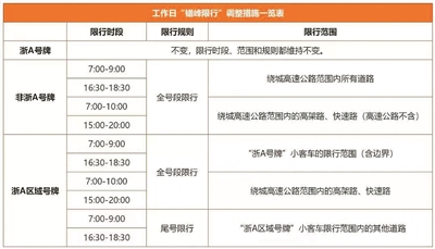 “浙A区域号牌”、“非浙A号牌”限行范围和时段有调整