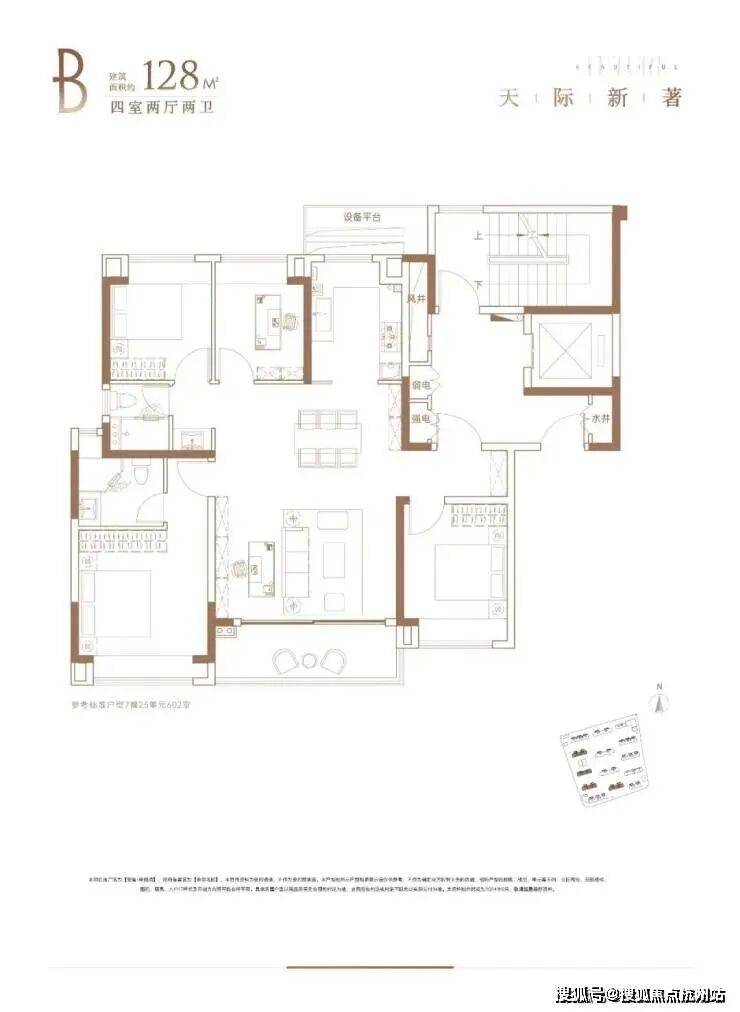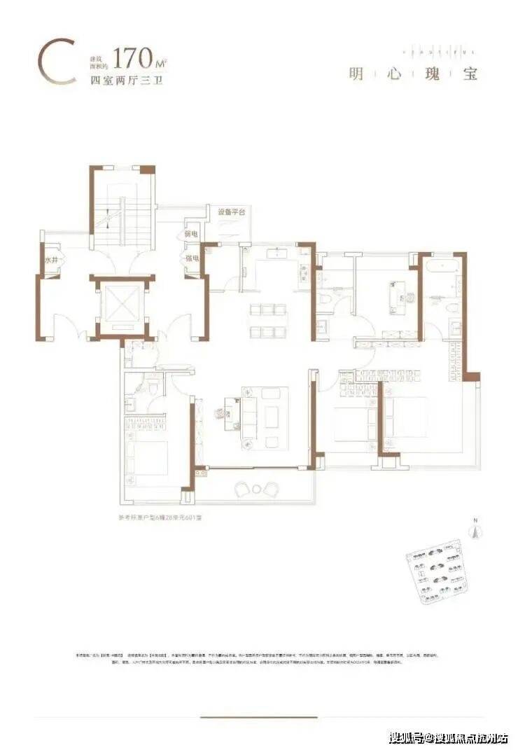 除了建面约170㎡四房,项目还有少量建面约107、128㎡房源在售。