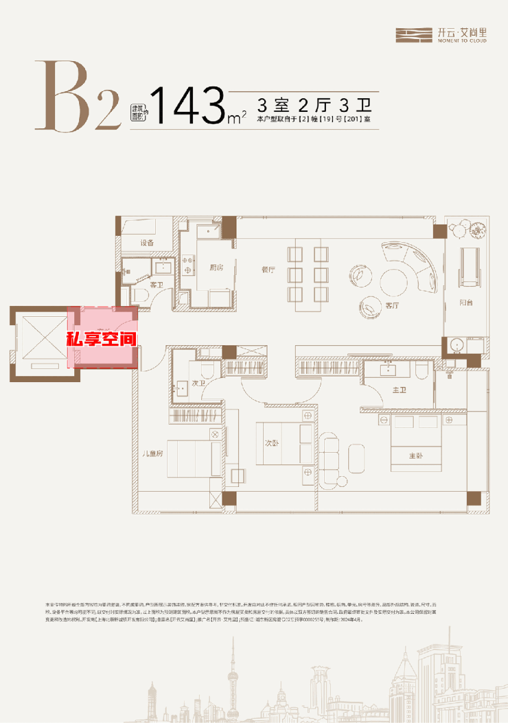 建面约143㎡3房户型总价约1400万起,适配热衷尺度改善的客户!该户型的客厅和主卧,真的很吸睛!