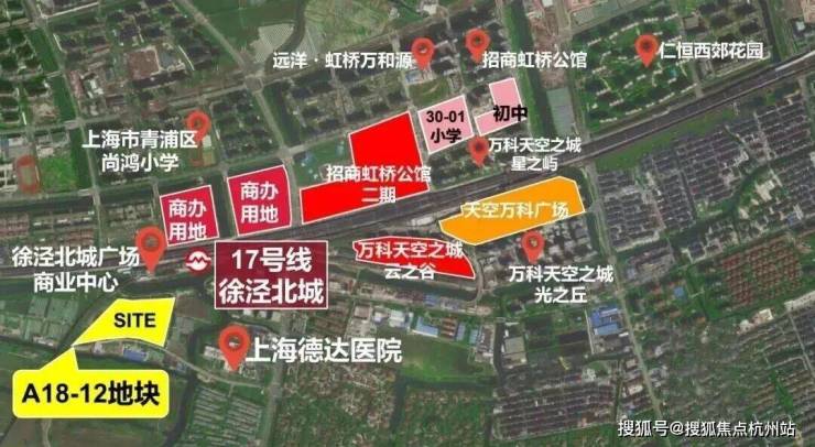 项目北侧紧邻17号线徐泾北城站(暂时需绕行河道),1站可达徐盈路天空万科广场,2站至蟠龙古镇商业区,3站直达国家会展中心,4站即达虹桥枢纽。