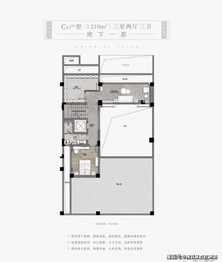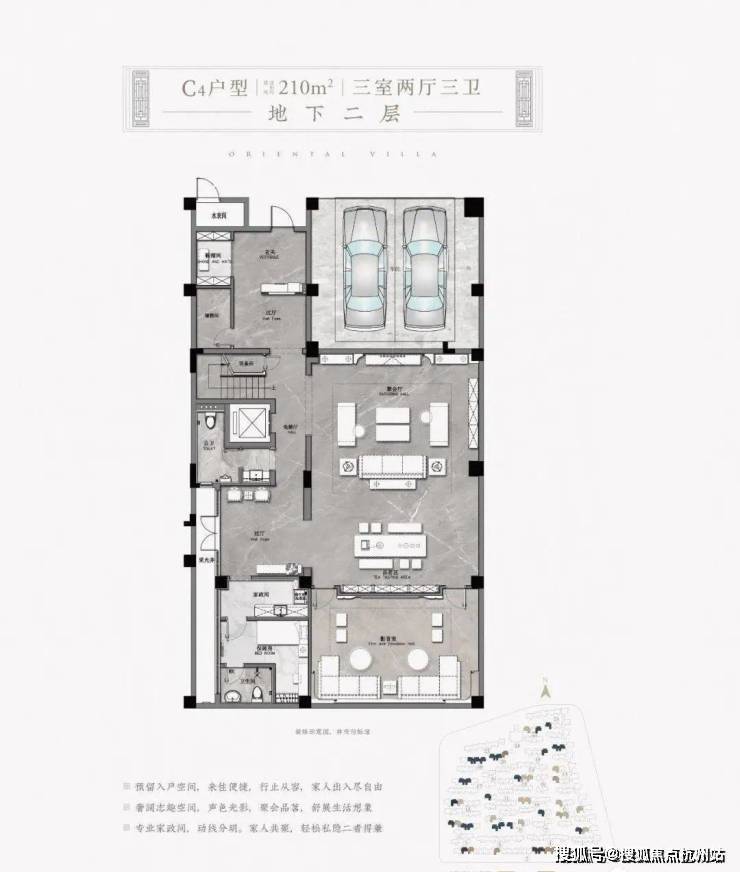 以项目东北角的建面约330㎡H户型为例,地下二层的室内可配置保姆房、