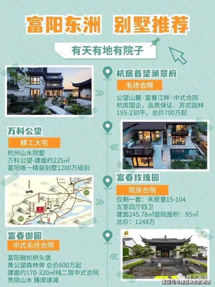 富春御园:准现房、黄公望4A级景区、准现房、纯两层中式合院、主力面积170、210和230方、总价580万-3000万;