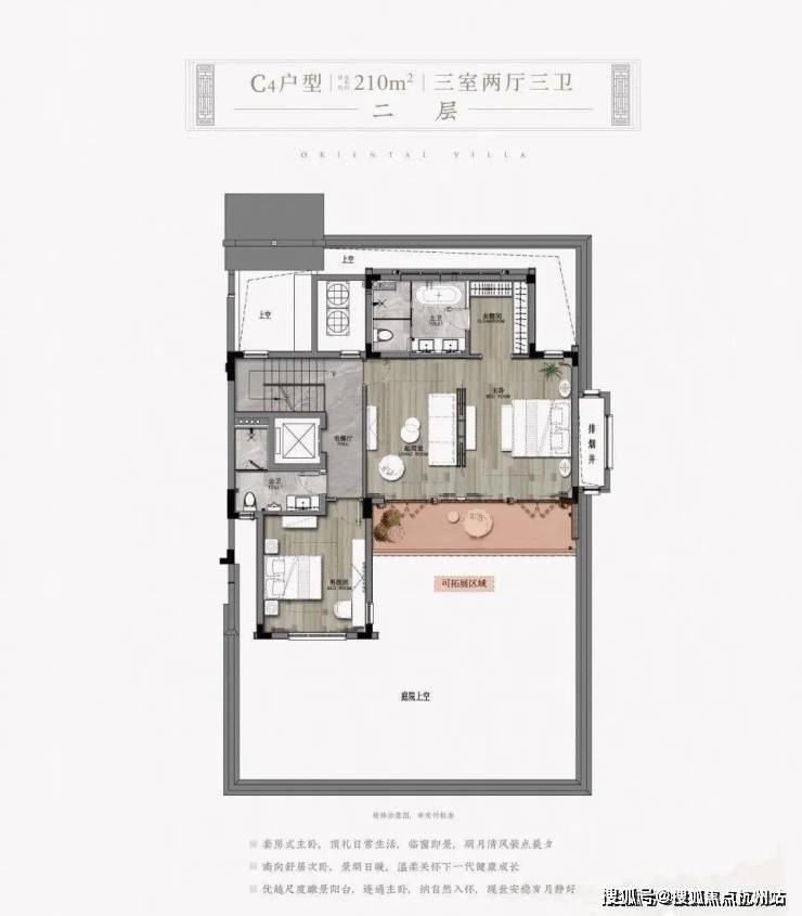 比如它210㎡以上就做到了三开间朝南,部分边套花园甚至能到400-500㎡。