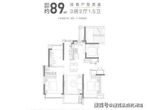 1. 建面约 89㎡ 3 房 2 厅 1.5 卫(刚需王牌)