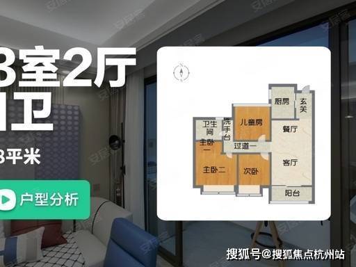 2. 建面约 88㎡三房两厅一卫 —— 三口之家,实用之选