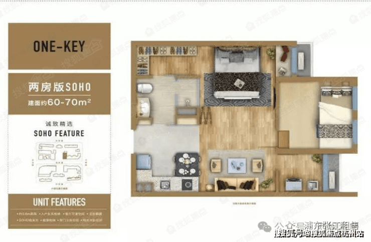 卫生间:1个卫生间设计,布局紧凑。厨房:开放式厨房,油烟恐干扰客厅。。 其他:4.5米挑高,买一层享2层。。 客厅:客厅朝被,带阳台,采光不错。。