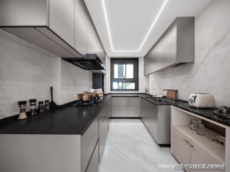 而在厨房,这种极致收纳的思维被简化为“一步原则”:收纳空间全部打开,几乎能填满整个厨房空间,这些收纳空间不是随意塞满的,而是根据日常烹饪习惯的频率来贴心规划的,能保证你在操作半径内触手可得,整个烹饪能一气呵成。