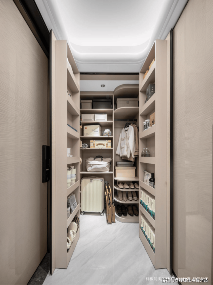 “女本位”视角的设计细节,不是单纯的考虑去便利女性日常习惯,也考虑到女性在家务工作中的便利,一个典型代表就是建发海宸天花板级别的收纳体系。