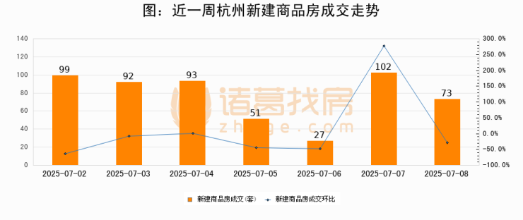 【杭州成交日报】07月08日新房成交73套、二手房181套;涨价房源19套