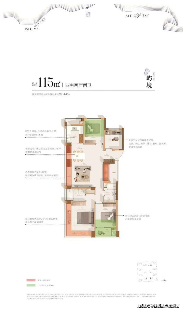 建面约115方户型: