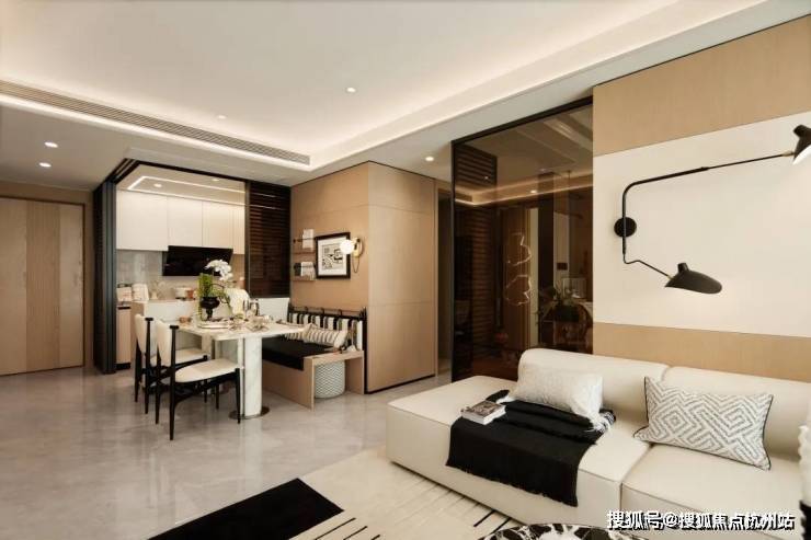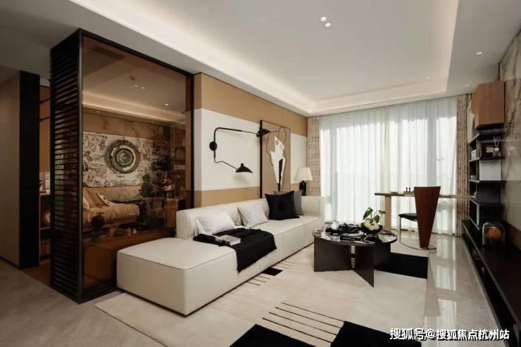 建面约105m²的户型有近6m的纯屏巨幅玻璃,大大提升了采光和观景的需求,“起床就能看到风景”.约5.95m大尺寸的横厅连接超长阳台,做出了奢阔的空间感,形成全家人欢聚的超级大公区.媲美高奢酒店的套房主卧带走入式衣帽间、主卫和飘窗,南次卧带阳台,还是L型玻璃护栏设计,尺度感非常阔绰.