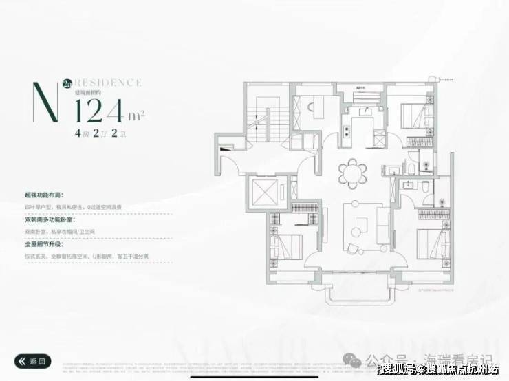 建面约129㎡4房2厅2卫:一梯两户,层高3.05米,三开间朝南,全卧飘窗,LDK一体化设计,南北直通,南向整体面宽约11.1米,其中客厅面宽约4.4米,主卧面宽约8.6米!
