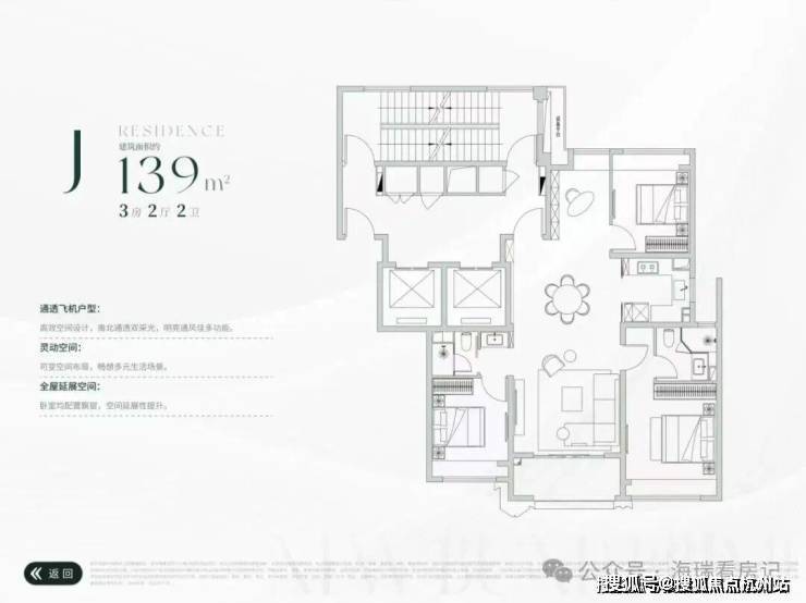 1#总高6-13-14F,首层为社区配套及商业,户型为建面约130㎡以及建面约137㎡3-4房,一梯两户,层高约3.05米;