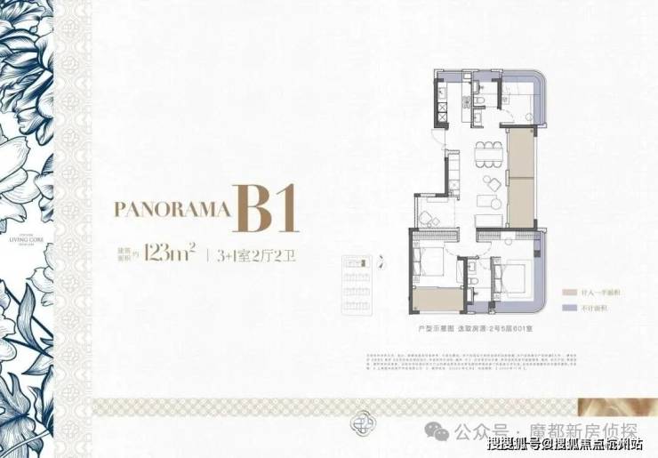 建面约123㎡(高层)三阳台和双270°转角,飘窗(实得率应该可以达到96%左右)