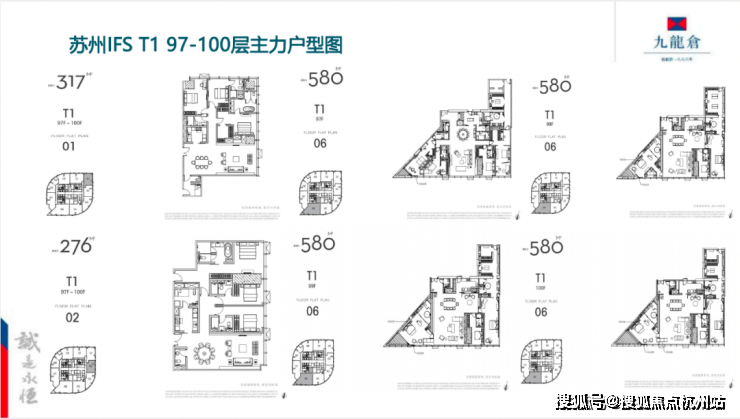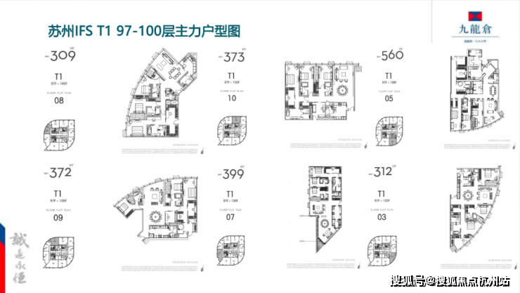 “江苏第一高”“全球十大可售超高层地标住宅”,世界上唯一可售超 高层;L97-L100 云端摩天大宅,70年产权,垂直高度327米起;