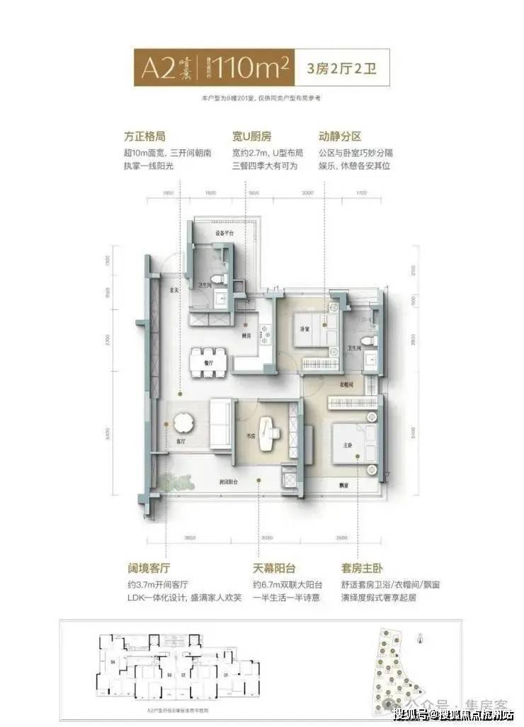 建面约105㎡晴光户型,不仅实现更优面积排布,更做到精神与审美的高度适配。在设计中,这间三房同样拥有南向大面宽, 搭配S墙/开放式厨房/一体化餐客厅/多功能书房/酒店套房主卧等,将整个空间的开阔感和互动性做到极致,满足居住者对舒适、安逸的“精准需求”。