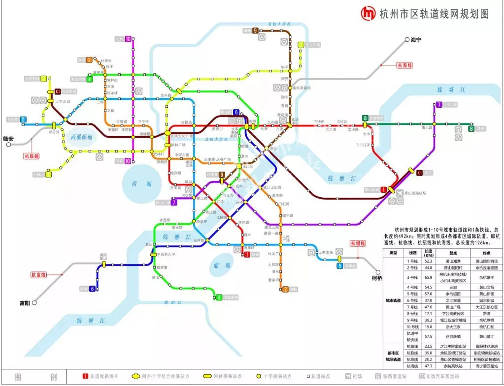 据了解,今年较新修订的《杭州市城市综合交通专项规划》中,杭州已经确定的轨道交通线路总长为618公里。其中,1-10号城市轨道线和一条中轴快线,总长约492公里;四条杭州都市区城际轨道,总长度约126公里。