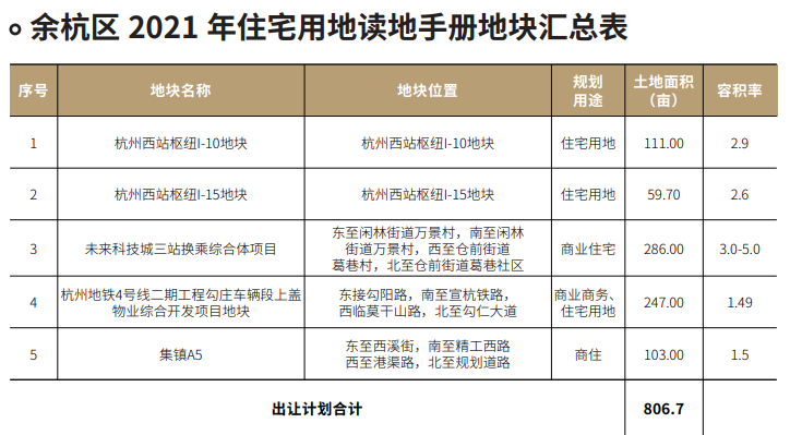余杭区今年计划供地5宗地块,同样都是关注度非常高的地块。