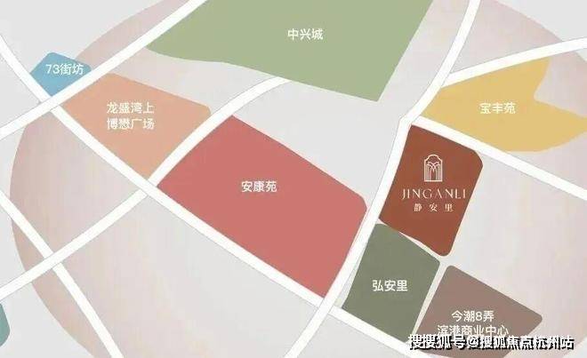 东邻今潮8弄(巴金图书馆、滨港商业中心已绽放)、西接安康苑&龙盛湾上(规划超甲办公/星级酒店/石库门商业),南望弘安里传世石库门大宅。