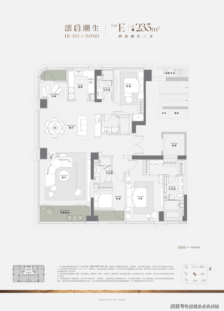 项目185㎡户型作为滨江园境主座,堪称上海滨江之上的园境栖居典范。