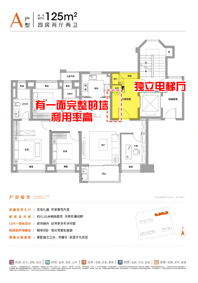 建面约125㎡全面升级迭代的四房户型,总价仅约500万级,在现在的新房二手房市场中都是非常难找到对手的。