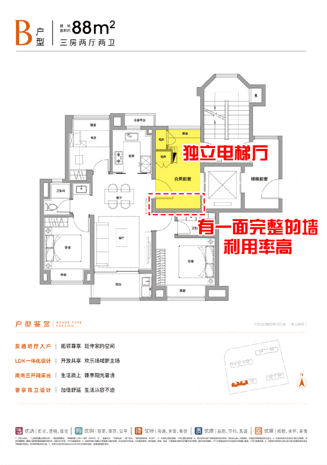 保利虹桥和颂·IN255官方售楼处电话:400-8385-958☎☎建面约88㎡精奢全能户型惊艳亮相。功能性足够,仍然具有舒适的尺度感,并有效控制总价,对刚需朋友非常友好。在户型设计上,经典的飞机户型,且南北通透。全屋飘窗,不仅有效拓展了使用空间,也为生活增添了很多情趣。