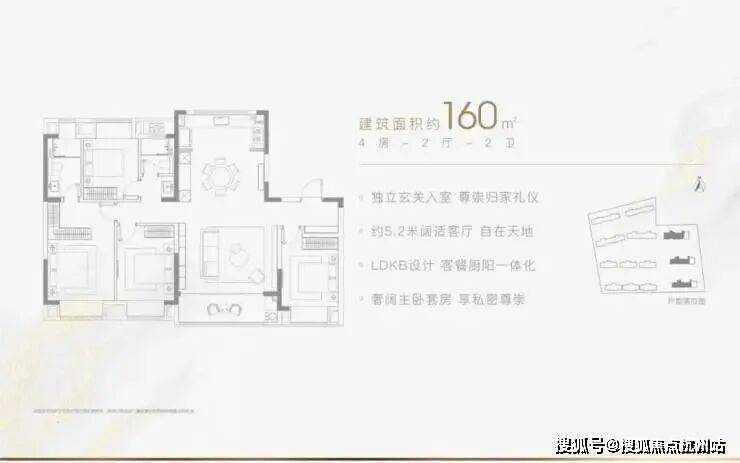 建面约160㎡户型:4室2厅2卫设计,南北通透,主卧套房带独立卫浴和步入式衣帽间,客厅连接景观阳台,厨房采用U型布局,动线合理