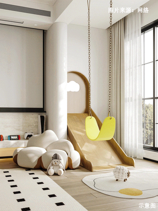 东侧约5.4米面宽空间,可规划幼儿卧室与童趣活动室,搭配树屋、滑梯等设计,联动南侧约8.8㎡阳台打造休闲阅读区,赋予孩子自由灵动的成长天地。